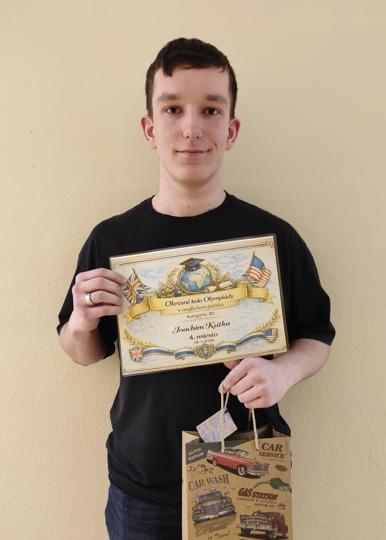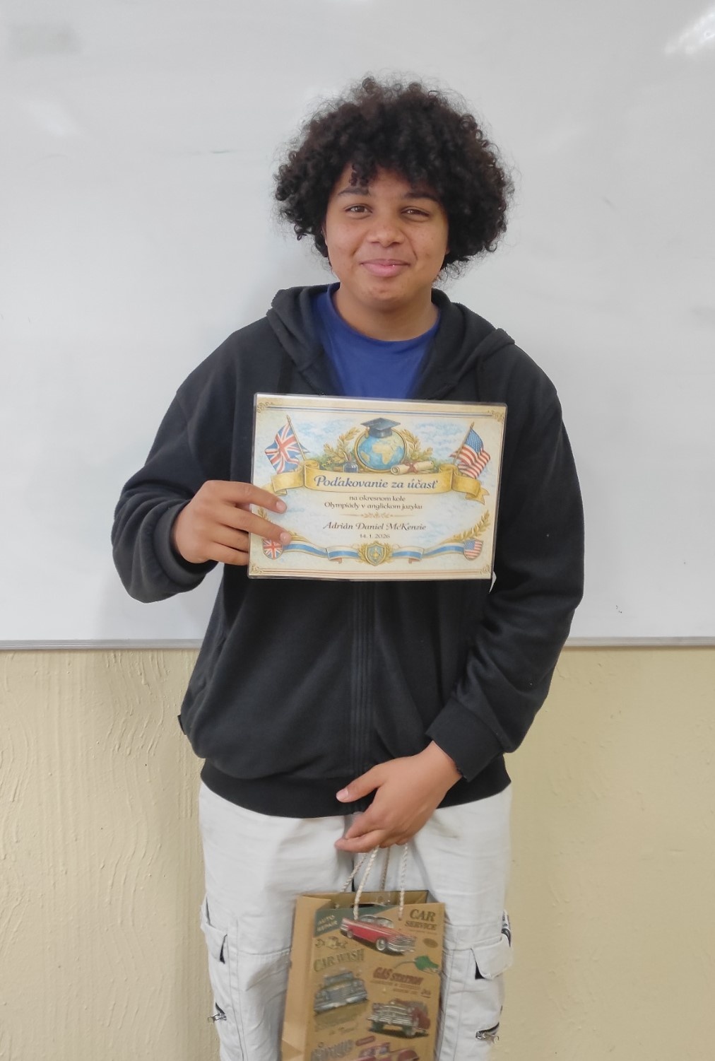 Ďakujeme Joachimovi Kuťkovi, IV.NA a Adriánovi McKenziemu, I.ME za reprezentáciu školy na okresnom kole Olympiády v anglickom jazyku. Adrián sa umiestnil na 6. mieste a Joachim na 4. mieste.